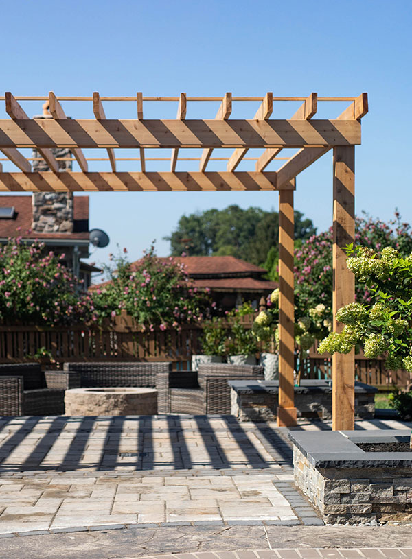 Pergolas offer privacy and a shaded area for you to enjoy the benefits of relaxing outdoors while keeping yourself protected from outdoor elements. Pergolas can be decorated with plants, hanging lights, and other outdoor accents. Fill your pergola with comfortable furniture and utilize this area for reading, hosting intimate gatherings and so much more.